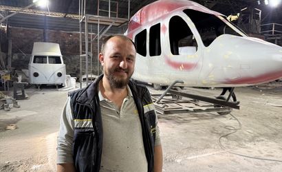 Tekirdağ'da oto kaporta boyacısı Ümit Marangoz, fiberglasta yaptığı otomobil maketlerinden sonra şimdi de birebir boyutta aynı malzemeden helikopter maketi üretmeye hazırlanıyor.