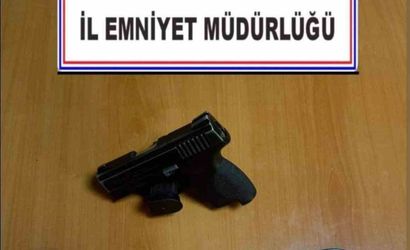 Yapılan arama ve kontrollerde ele geçirilenler: 1 adet ruhsatsız tabanca, 1 adet kuru sıkı tabanca, 185 gram çeşitli uyuşturucu madde ve 577 adet uyuşturucu hap.