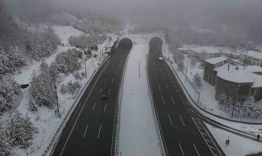 TEM Otoyolu Bolu Dağı Tüneli'nde kar yağışı etkili oluyor