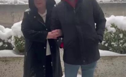 Amasya'daki bir otelin bahçesinde, cep telefonuyla selfie çekmek isteyen Öztürk çifti kısa süreli bir şaşkınlık yaşadı. Yağış sonrası tentede biriken karın yavaşça dökülmesini bekleyen çift, fotoğraf çektikleri sırada beklenmedik şekilde üzerine yoğun bir kar kütlesinin düşmesiyle üstleri bir anda beyaza büründü.