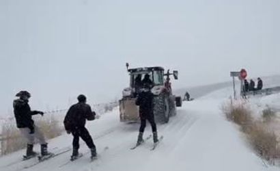 Ardahan merkeze bağlı Tepeler köyünde yağan yoğun kar, gençlerin yaratıcı eğlencesine sahne oldu. Soğuk havaya aldırış etmeyen gençler, traktörün arkasına bağladıkları kayakla köy yollarında kayarak kışı keyfe çevirdi.