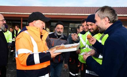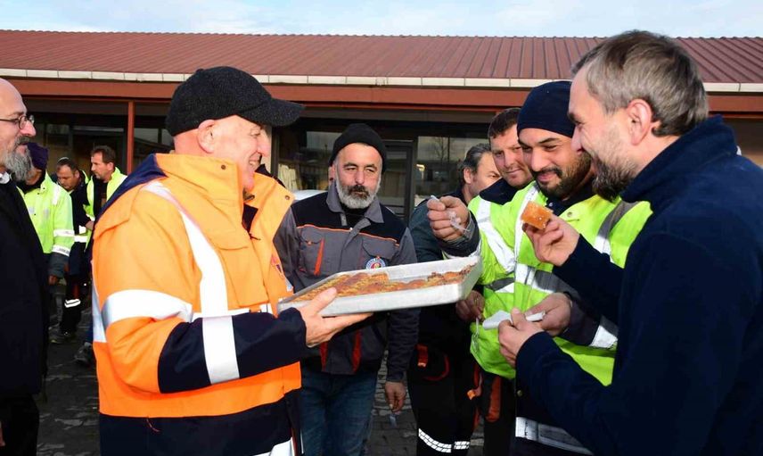 Belediye Başkanı Şenol Kul, gece gündüz sahada görev yapan personele teşekkür etmek amacıyla Temizlik İşleri Müdürlüğünde bir araya geldi. Ziyarette Başkan Kul, personele baklava ikram ederek teşekkür etti; belediye başkan yardımcıları ve birim müdürleri de programa katıldı.