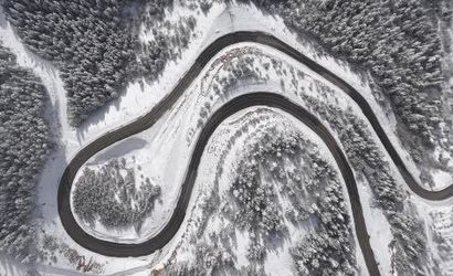 Gümüşhane-Şiran arasındaki en kısa güzergah olan 2 bin rakımlı Tersun Dağı Geçidi, etkili kar yağışı sonrası kartpostallık görüntülere sahne oldu. Kıvrımlı yolları ve dik rampalarıyla sürücülerin korkulu rüyası olarak bilinen geçitte, oluşan beyaz örtü havadan kaydedilen görüntülerle ortaya kondu.