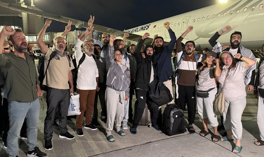Küresel Sumud Filosu'nda yer alan ve İsrail tarafından uluslararası sularda alıkonulan 15 Türk vatandaşı aktivist, Türk Hava Yolları'nın (THY) uçağı ile İstanbul Havalimanı'na ulaştı. Uçak, Ürdün'ün başkenti Amman'daki Kraliçe Aliye Uluslararası Havalimanı'ndan 16.35'te hareket etti ve saat 18.50'de İstanbul'a indi.