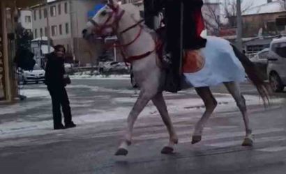 Kayseri'nin Tomarza ilçesinde esnaflık yapan Avni Bozkurt, atına binerek ilçe çarşısında tur attı. Bozkurt'un sırtına astığı Türk bayrağı ve elindeki Göktürk bayrağı ile gerçekleştirdiği bu tur, ilçede dikkat çekti.