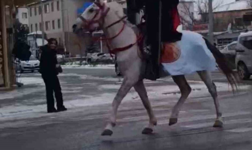 KAYSERİ’NİN TOMARZA İLÇESİNDE BİR ESNAF, AT ÜSTÜNDE SIRTINA ASTIĞI TÜRK BAYRAĞI VE ELİNDE GÖKTÜRK BAYRAĞI İLE TUR ATTI.