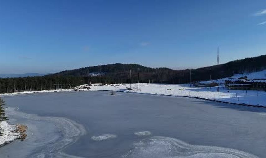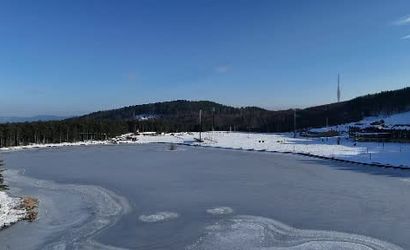 Düzce’nin Kaynaşlı ilçesindeki Topuk Yaylası’nda yer alan gölet, bölgedeki hava sıcaklığının sıfırın altında 10 dereceye düşmesi sonucu yüzeyi tamamen buzla kaplandı.