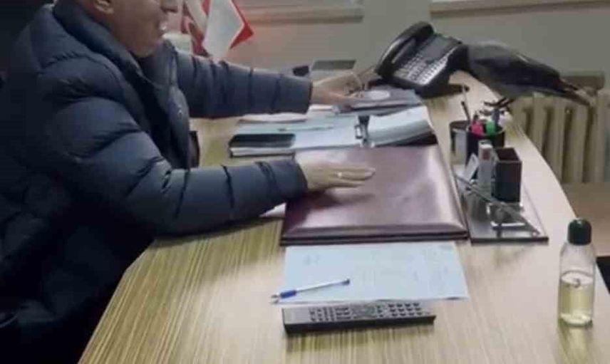 Görüntülerde Başkan Erdem pencere önündeki kargayı fark ederek "Gel gel, üşüdün mü?" dedi. Karga pencereden içeri girip masanın üzerine kondu. Erdem, kargaya "Sana mama vereceğim, buraya gel" diye seslendi.
