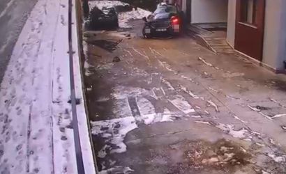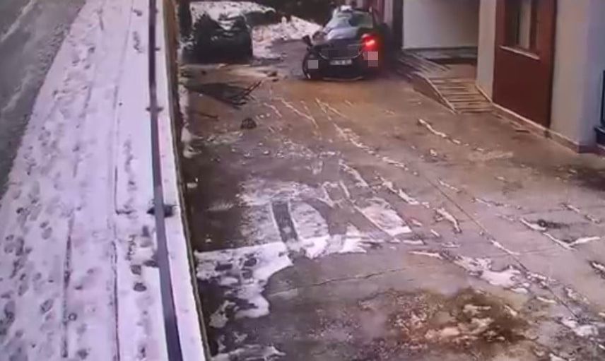 TRABZON’DA BUZLANMA NEDENİYLE KONTROLDEN ÇIKAN CİP, DEMİR KORKULUKLARI AŞARAK SİTENİN BAHÇESİNE DÜŞTÜ. O ANLAR GÜVENLİK KAMERASINA SANİYE SANİYE YANSIDI.