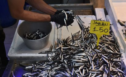 Trabzon'un Ortahisar ilçesine bağlı Moloz mevkisindeki balıkçı tezgahlarında hamsi ve istavritin kilogram fiyatı 150 lira olarak belirlendi. Balıkçı tezgahlarında hamsi, istavrit, mezgit, alabalık, barbun, levrek, somon ve çipura gibi çeşitli balık türleri tüketicilerin beğenisine sunuluyor.