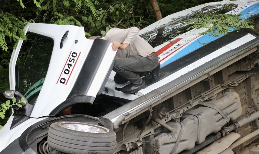 Alınan bilgilere göre, 61 D 0450 plakalı minibüsün sürücüsü Fatih K., Üniversite Mahallesi'nde aracını park ederek yolcu beklemeye başladı. Sürücünün dışarıda bulunduğu esnada minibüs, kontrolsüz bir şekilde kayarak yolun alt kısmındaki şarampole devrildi.