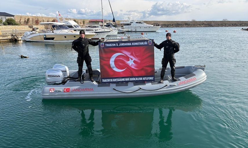 Trabzon İl Jandarma Komutanlığı Sualtı Arama Kurtarma (SAK) timleri, Trabzon'un kurtuluşunun 107'nci yıl dönümünü, Karadeniz'de dalış yapıp su altında Türk bayrağı açarak kutladı.