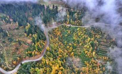 Yaylalara giden yolda, yeşil, sarı ve kahverengi tonlarıyla kaplı ağaçlar, göz alıcı bir manzara oluşturuyor. Ziyaretçiler ağaçlarla çevrili yolda ilerlerken, sisle dolu vadilerde keyifli bir seyahat deneyimi yaşıyor.