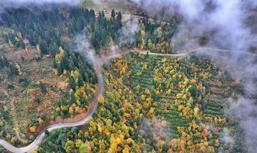 Türkiye'nin önemli tarihi ve turistik mekanlarına sahip olmasının yanı sıra doğal güzellikleriyle öne çıkan Trabzon'da yüksek kesimler sonbahar renkleriyle kaplandı. Ziyaretçiler sonbahar renklerine bürünen ağaçların çevrelediği yolda ilerlerken, vadileri dolduran sis bulutları arasında keyifli bir yolculuk yapma fırsatı buluyor.