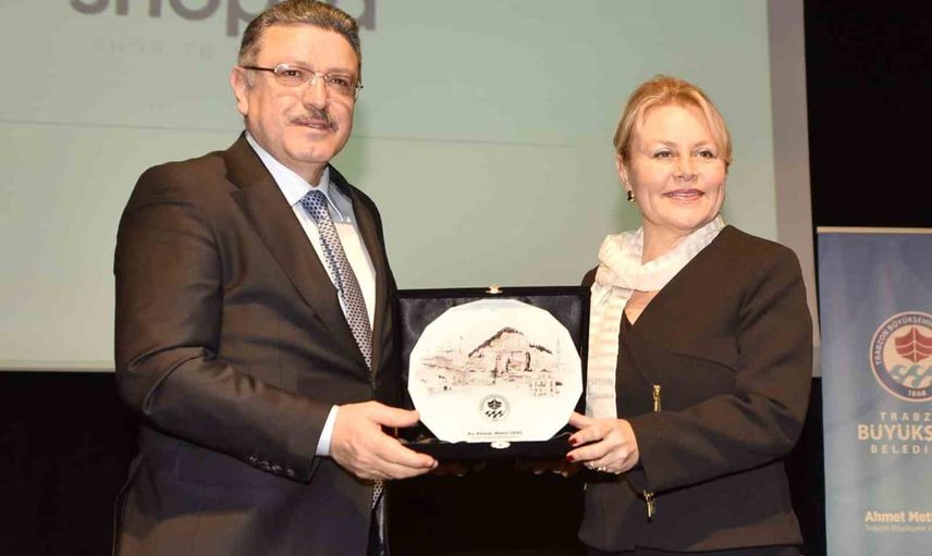 Konuşmaların ardından Başkan Ahmet Metin Genç, Demet Sabancı Çetindoğan'a günün anısına bir plaket takdim etti.
