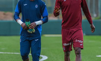 Trabzonspor, Trendyol Süper Lig'in 6. haftasında 20 Eylül Cumartesi günü sahasında Gaziantep FK ile oynayacağı maçın hazırlıklarına başladı. Kaleci Onana (solda) ve forvet oyuncusu Onuachu da (sağda) antrenmanda yer aldı.