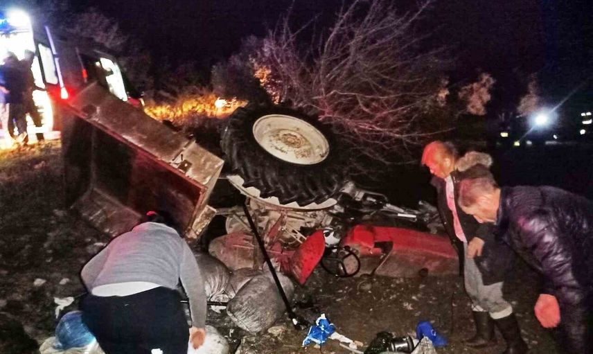 Muğla'nın Menteşe ilçesi Yeşilyurt Mahallesi sınırları içinde, tarlada meydana gelen traktör devrilmesi sonucu traktörün üzerindeki bir kadın aracın altında kaldı.