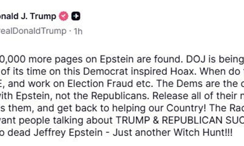 ABD Başkanı Donald Trump, sahibi olduğu Truth sosyal medya platformundan yaptığı açıklamada, Jeffrey Epstein dosyasına dair ortaya çıkan belgeler üzerinden siyasi rakiplerini hedef aldı.