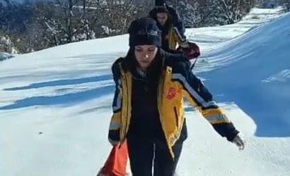 Tunceli'de sağlık ekipleri zorlu yolu yürüyerek hastayı ambulansa ulaştırdı