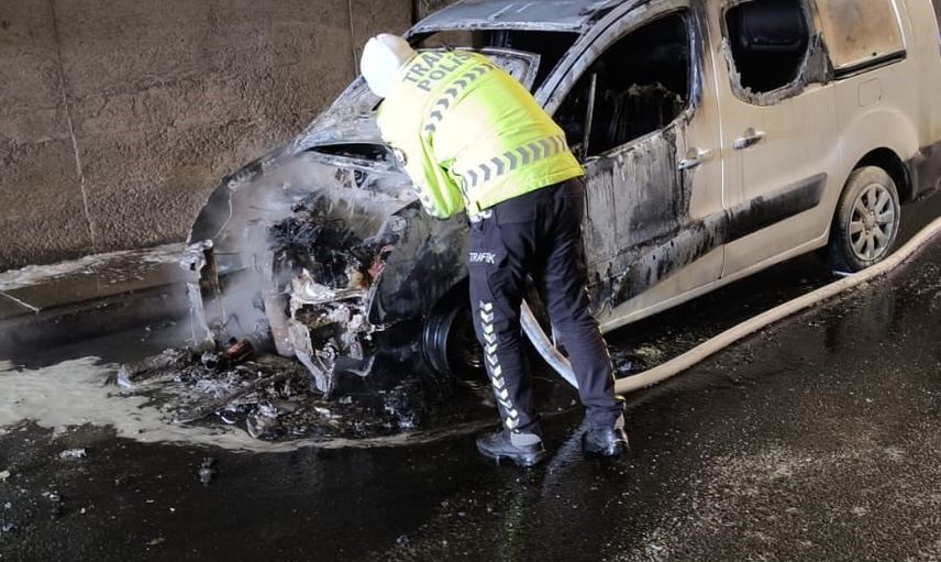 Tünelde araç yangını kısa sürede kontrol altına alındı