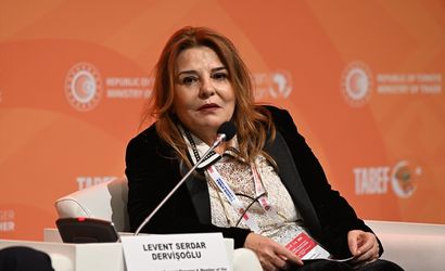 Anadolu Ajansının (AA) Global İletişim Ortağı olduğu Türkiye-Afrika İş ve Ekonomi Forumu'nda Rekabetçi ve İş Birlikçi Tekstil Değer Zincirleri oturumu gerçekleşti. Panele 3-S Mühendislik Genel Müdürü ve Yönetim Kurulu Başkanı ve Uganda'nın İstanbul Fahri Konsolosu Levent Serdar Dervişoğlu (sol 2), AYTIM Grup Yönetim Kurulu Başkanı Sevda Aydın (sol 3), AIMEC, Kıdemli Danışman ve Ekonomist Tarig Ali Yousif Ahmed (sol 4), Zargue'sia Üst Yöneticisi (CEO) Ishmael Humphrey Tsakatsa (sol 5) katılarak konuşma yaptı.