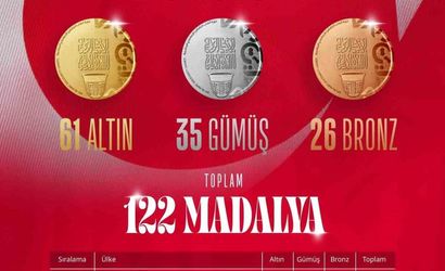 Türkiye: 61 altın, 35 gümüş, 26 bronz