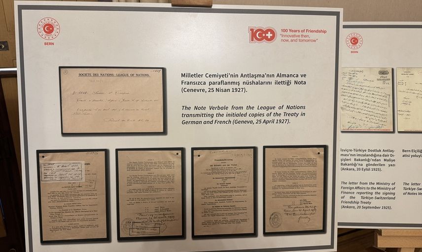 İsviçre'nin başkenti Bern'de, "Türkiye-İsviçre Dostluğunun 100. yılı: Arşivlerin Gözünden" konulu arşiv belgeleri sergisi açıldı. Türkiye'nin Bern Büyükelçisi Şebnem İncesu'nun ev sahipliğinde, Türkiye-İsviçre Dostluk Anlaşması'nın 100. yıldönümü vesilesiyle gerçekleştirilen serginin açılışına, Zürih Başkonsolosu Fazlı Çorman, Cenevre Başkonsolosu Salih Boğaç Güldere, İsviçre Türk Toplumu (İTT) Genel Başkanı Suat Şahin, Uluslararası Demokratlar Birliği (UID) İsviçre Başkanı Murat Şahin ile İsviçre ve Türk toplumundan konuklar katıldı.