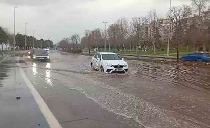 Kuvvetli rüzgâr ve yağmur nedeniyle sahil kesiminde su birikintileri oluştu ve bazı araçlar ilerlemekte güçlük çekti.