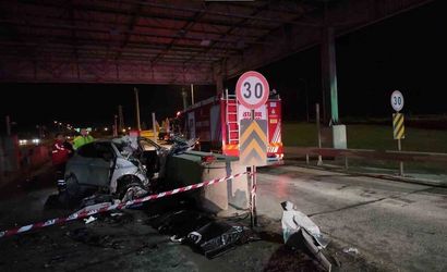 Kaza, 34 MVF 612 plakalı otomobilin aşırı hızla gişelere çarpması sonucunda meydana geldi. Çarpmanın etkisiyle araç adeta hurdaya döndü ve araçta yangın başladı.