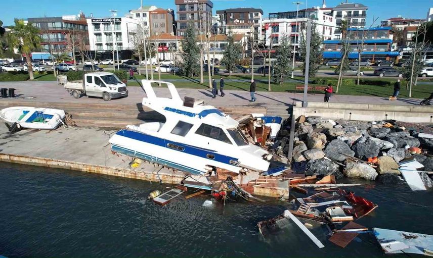 İstanbul’un Tuzla ilçesinde dün etkili olan şiddetli fırtına ve sağanak yağış, sahil kesiminde önemli hasara neden oldu. Yükselen dalgaların etkisiyle kıyıda demirli çok sayıda tekne zarar gördü.