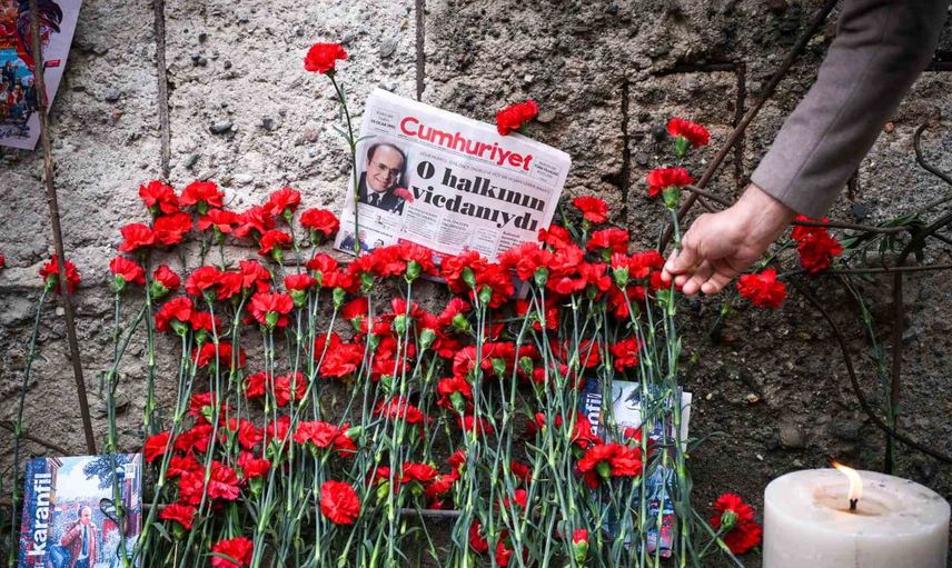 GAZETECİ VE YAZAR UĞUR MUMCU, ÖLÜMÜNÜN 33’ÜNCÜ YIL DÖNÜMÜNDE EVİNİN ÖNÜNDE ANILDI.