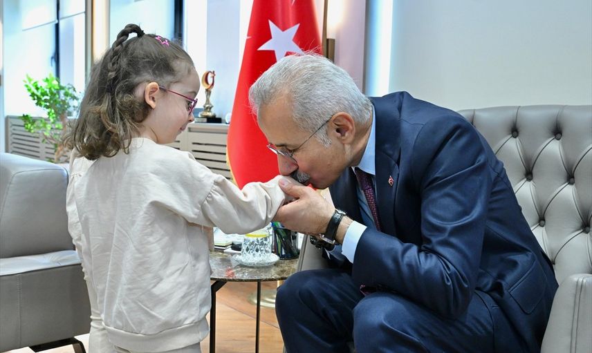 Ulaştırma ve Altyapı Bakanı Abdulkadir Uraloğlu, babalarıyla uçak inişlerini izlerken kaydedilen görüntüleriyle ilgi odağı olan ikiz kardeşler Erva ve Zümra'yı Bakanlık'ta misafir etti.