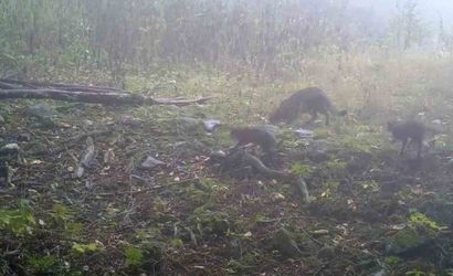 Uludağ’da sisler arasında anne yaban kedisi ve yavruları