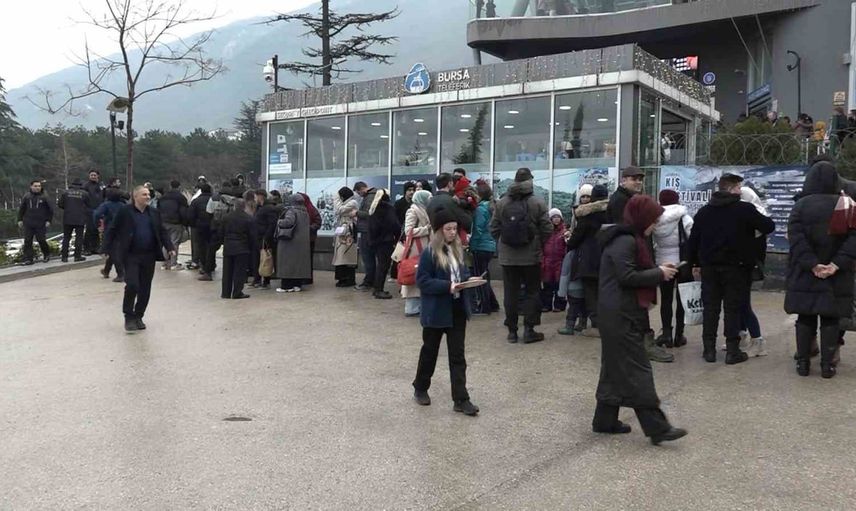 Kış turizminin önde gelen merkezlerinden biri olan Uludağ'da kar kalınlığı yer yer 85 santimetreye ulaşırken, trafik sıkışıklığını aşmak isteyenler alternatifi teleferikte buldu. Ancak yoğun talep nedeniyle oluşan sıra ara sokaklara kadar uzadı.