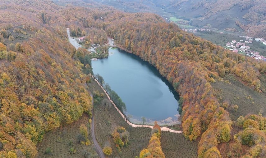 Ordu'nun Gölköy ilçesinde sonbahar renklerinin hakim olduğu Ulugöl Tabiat Parkı, doğada huzurlu vakit geçirmek isteyenleri ağırlıyor. İlçe merkezine 17 kilometre uzaklıktaki parkta, sonbaharla birlikte sarı, yeşil ve turuncunun tonları yer almaya başladı.
