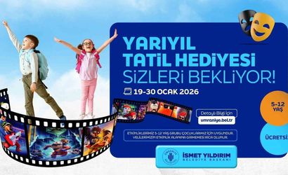 Ümraniye Belediyesi, 5-12 yaş grubundaki çocuklar için hazırladığı çeşitli kültürel ve sanatsal etkinliklerle yarıyıl tatiline renk katıyor. 19-30 Ocak 2026 tarihleri arasında düzenlenecek programda minikler film gösterimleri, tiyatro oyunları ve sürpriz etkinliklerle buluşacak.