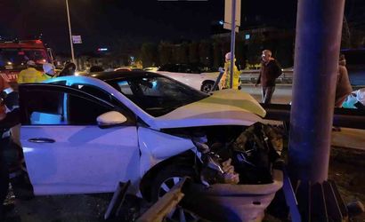 Ümraniye'de alkollü sürücünün aracı bariyerlere saplandı