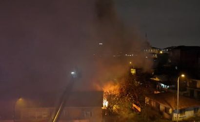 Ümraniye'de kereste deposunda çıkan yangın paniğe neden oldu