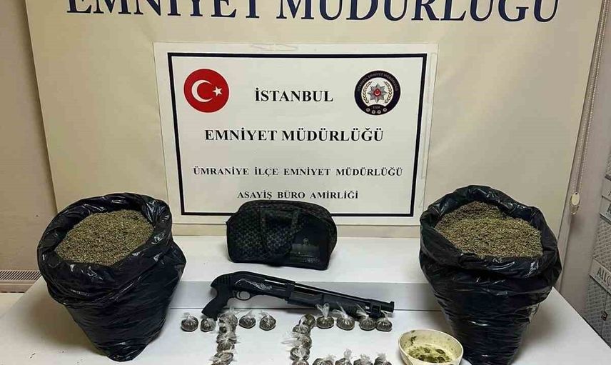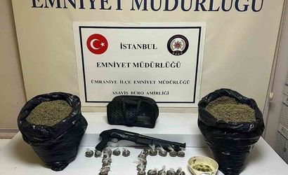 İSTANBUL'UN ÜMRANİYE İLÇESİNDE BİR UYUŞTURUCU SATICISINA AİT EVE DÜZENLENEN OPERASYONDA, 10 KİLONUN ÜZERİNDE UYUŞTURUCU VE SİLAHLAR ELE GEÇİRİLDİ. SATICI OLDUĞU ANLAŞILAN ZEHİR TACİRİ GÖZALTINA ALINDI.