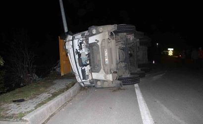 Ünye’de çöp kamyonu devrildi, sürücü yaralandı