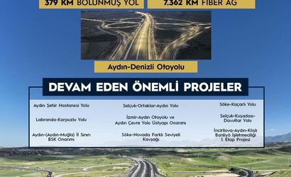Kentte devam eden başlıca projeler arasında Aydın Şehir Hastanesi Yolu, Selçuk-Ortaklar-Aydın Yolu, Söke-Kaçarlı Yolu, Selçuk-Kuşadası-Davutlar Yolu, Labranda-Karpuzlu Yolu ile İzmir-Aydın Otoyolu ve Aydın Çevre Yolu üstyapı onarımı yer alıyor.