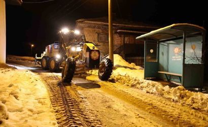 Kar nedeniyle kapanan köy yollarının yeniden ulaşıma açılabilmesi amacıyla iş makineleriyle yol açma çalışmaları gerçekleştirildi. Eş zamanlı olarak tuzlama ve yol güvenliği faaliyetleri de aralıksız sürdürüldü.
