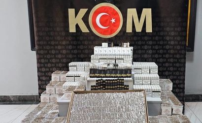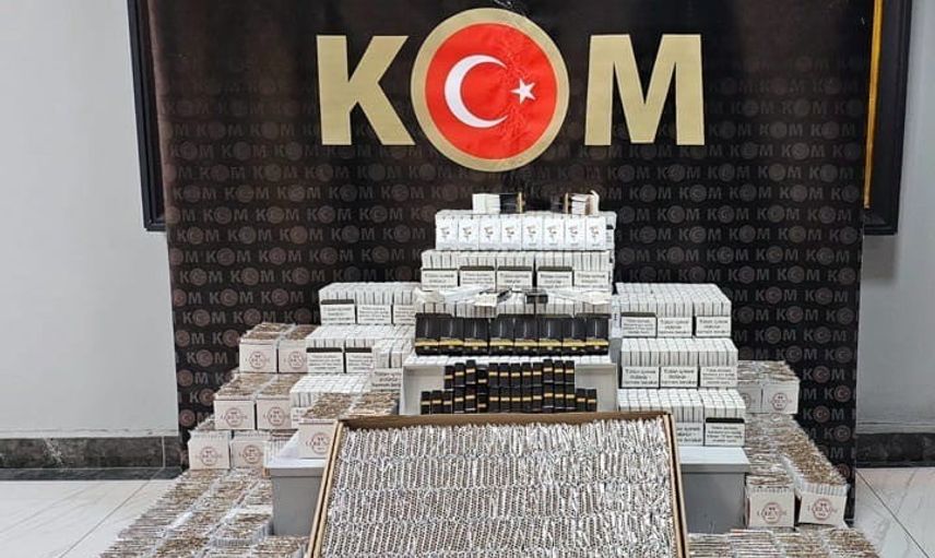İki adrese düzenlenen baskında milyonlarca makaron ve yüz kilo tütün ele geçirildi