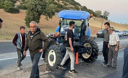 Uşak'ın Ulubey ilçesinde traktörle çarpışan otomobildeki karı koca yaralandı.