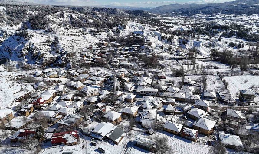 Uşak'ın yüksek kesimlerinde kartpostallık kar manzaraları