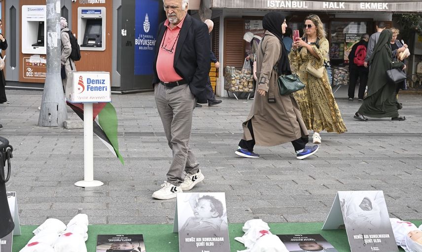 Üsküdar, Deniz Feneri Derneği tarafından organize edilen "İzlemek Yetmez" etkinliğiyle Gazze'deki insani duruma dikkat çekiyor. İkinci gününe giren etkinlik, Mihrimah Sultan Camisi önünde gerçekleştiriliyor.
