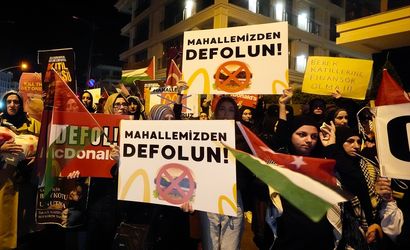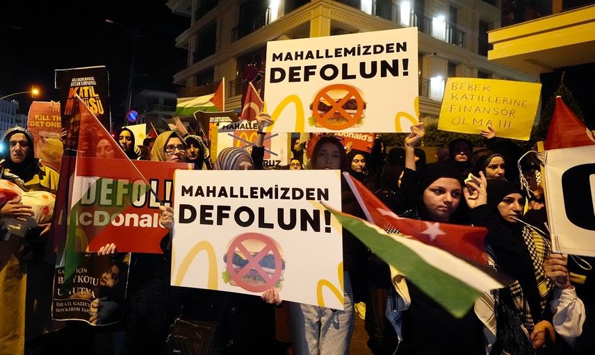 Üsküdar'da mahalle sakinleri, şube açmayı planlayan McDonald's'ı protesto etti. Bahçelievler Mahallesi Kaldırım Caddesi'nde açılması planlanan McDonald's şubesi önünde başlattıkları protestonun altıncı gününde bir araya gelen mahalle sakinleri, "Mahallemizde katil İsrail destekçisi istemiyoruz" yazılı pankart açtı.