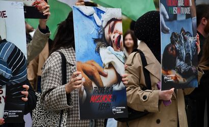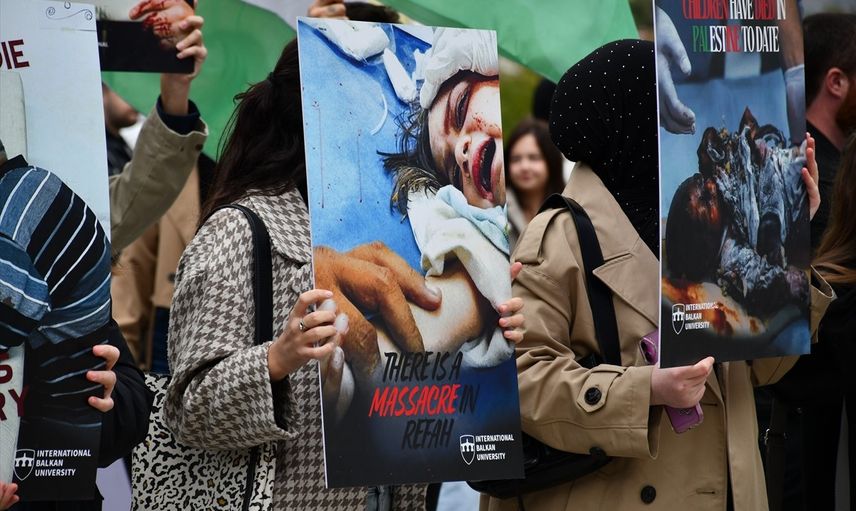 Kuzey Makedonya’nın başkenti Üsküp'te, Uluslararası Balkan Üniversitesi (IBU) öğrencileri, İsrail’in 8 Ekim 2023 tarihinde Gazze’de sürdürdüğü saldırılara karşı seslerini yükseltti.