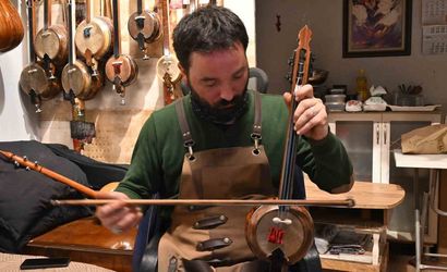 KÜLTÜREL MİRAS TAŞIYICISI OLARAK ESKİŞEHİR'DEKİ ATÖLYESİNDE 20 YILI GERİDE BIRAKAN SANATÇI EMRE GÜNDÜZ, USTA-ÇIRAK GELENEĞİYLE ÖĞRENDİĞİ KABAK KEMANE YAPIMINI CUMHURBAŞKANLIĞI KOROLARINA KADAR TAŞIYARAK SANATINI GELECEK KUŞAKLARA AKTARIYOR.
