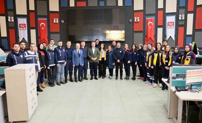 Erzincan Valisi Hamza Aydoğdu, Erzincan İl Sağlık Müdürü Dr. Cihan Tekin ile birlikte Erzincan 112 Acil Çağrı Merkezi'ni ziyaret etti.